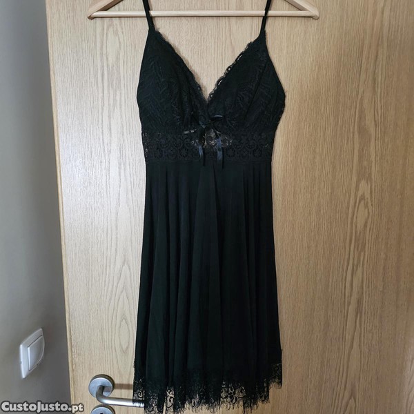 Camisa de noite de cor preta, de alças. Está nova, nunca foi usada.