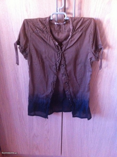 Camisa castanha da Gardénia de manga curta com atilhos nas pontas.