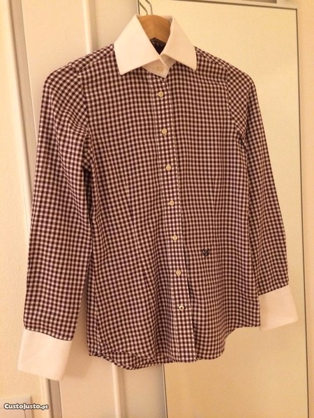 Vendo camisa da marca Sacoor, padrão de quadrados castanho/branco, tamanho 34. Entrego em mão em Lisboa. Não estou interessada em trocas. O preço não é negociável.