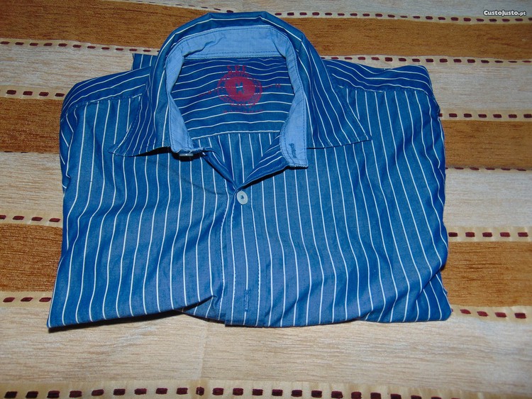 Azul-médio de mangas curtas. Tamanho M. Usada, mas em bom estado. Quebramar - eur10