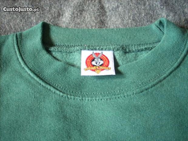 Camisola algodão original, marca Looney Tunes, cor verde com pelo por dentro e de tamanho M. ÚLTIMOS DIAS.