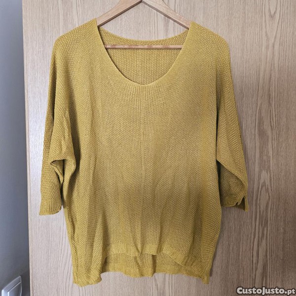 Camisola com mangas 3/4 de cor amarelo torrado/mostarda. Em excelente estado. Camisola muito bonita, super leve, ideal para usar em qualquer ocasião. Tamanho único.