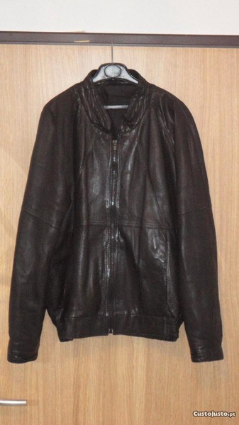 Casaco de cabedal unissexo cor preto, tamanho L.