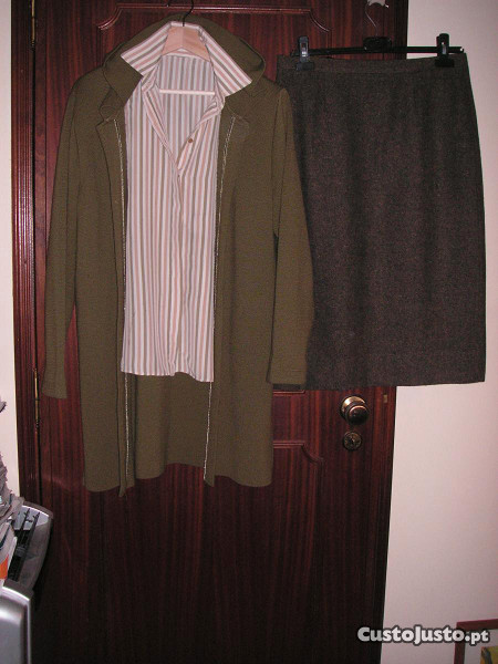 Casaco Malha com Capuz, Camisa / Blusa Seda e Saia Fazenda