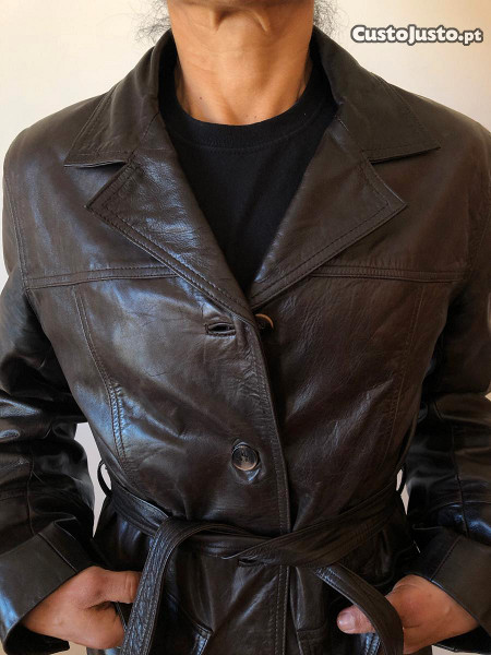 Casaco em Pele (genuína) com cinto, em excente estado.
