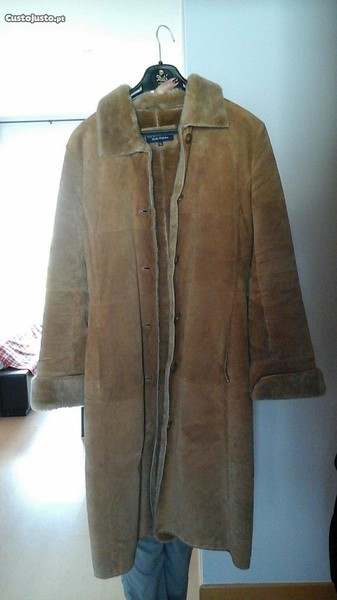 Casaco senhora pele porco em estado excelente, forro 100% acrílico tamanho XL aperta com botões e cinto, com marca em etiqueta e etiqueta de pele genuína.
