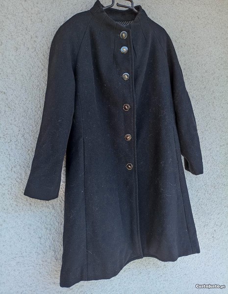Preço: 10 €Casaco sobretudo comprido preto com botões grandes L 40