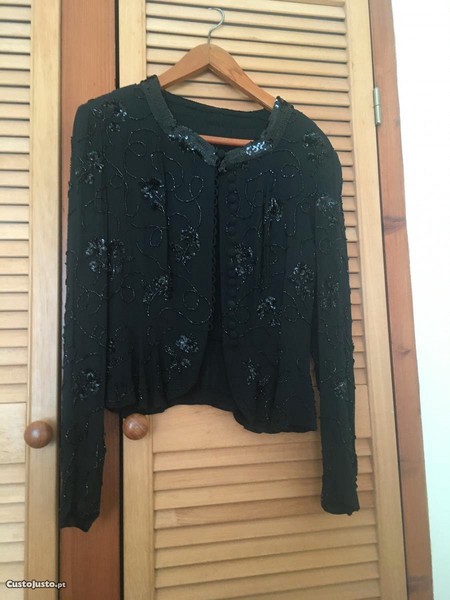 Preço: 55 €Casaquinha / jaqueta preta em crepe de seda toda bordada,vintage
