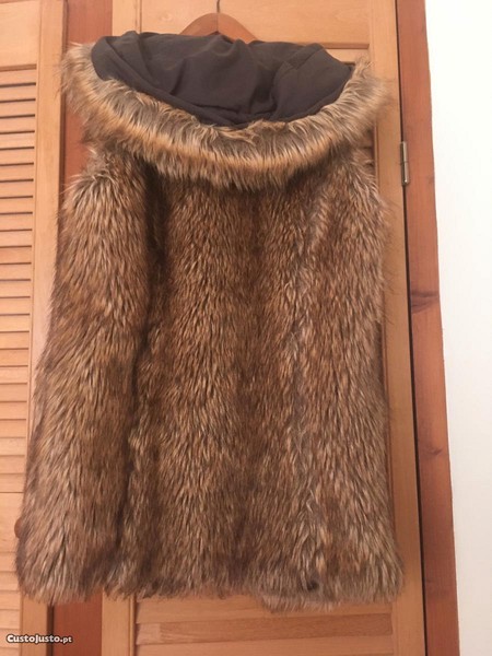 Colete com capuz de pelo sintético giríssimo,da Zara,muito quentinho