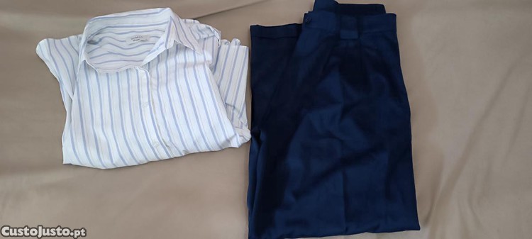Conjunto de calças tamanho 42/44 e camisa riscas tamanho L mas veste grande serve bem a xl/xxl