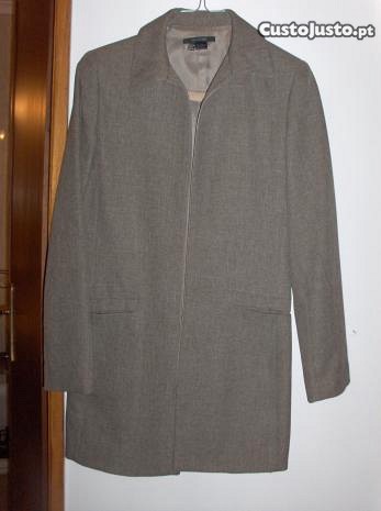 Fato castanho claro, Casaco comprido com bolsos e calça corte direito, da Zara, tamanho 36. Muito elegante a actual. Praticamente novo.