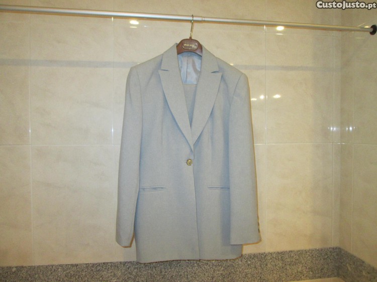 Vendo fato cinzento de senhora, usado, tamanho 42, 100% poliéster, fabricado em Portugal.
