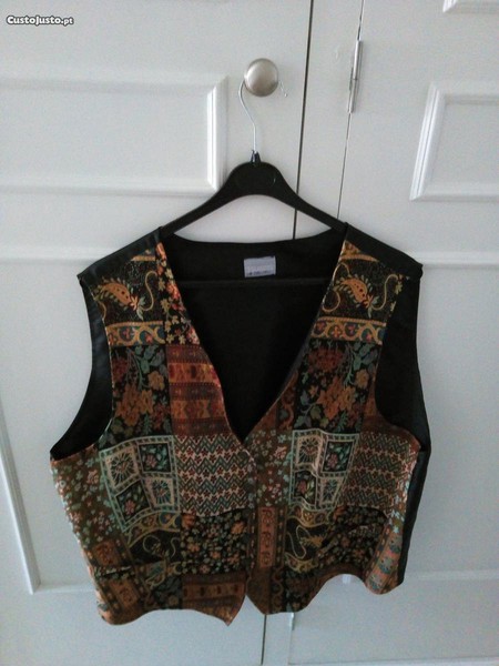 Um "gilet" original colorido de senhora com botões de metal e com bolsos falsos.