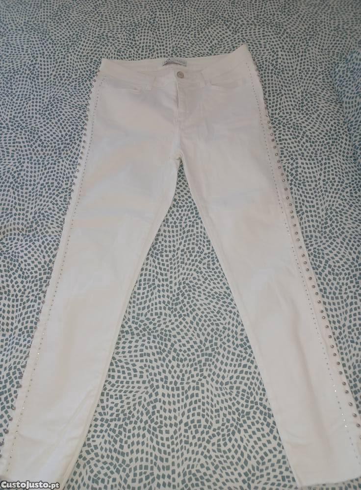 Preço: 10 €Jeans Zara brancas mid rise skinny com brilhos laterais
