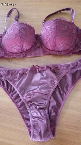 conjunto lingerie cor rosa velho marca Reverie. sutien 95B e cueca L