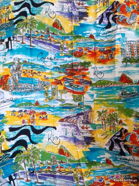 Páreo Novo/Pano a estrear, recheado de motivos alusivos a climas tropicais. Muito vistoso, com múltiplas funcionalidades, desde utilizar no corpo como Páreo ou como toalha de praia ou, ainda, para cobrir móveis ou afins dando um colorido especial à casa.