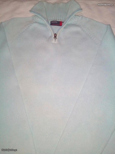 Polo em algodão, marca Quebramar, cor azul claro e tamanho M.