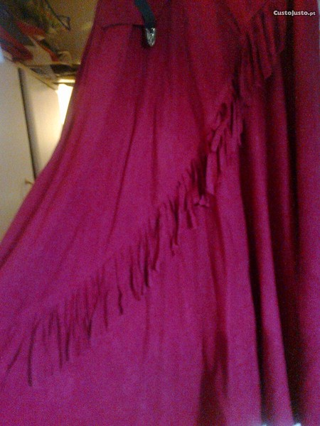 saia comprida em pele de pêssego, vermelha com farripas e aplicações, n34