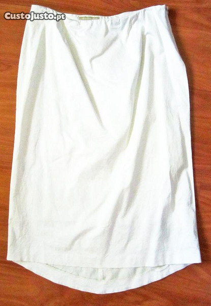 De cor branco puro, tem um corte muito elegante e termina de forma assimétrica em que a parte trás é mais comprida que a frente. Fecha de lado com um fecho escondido e tem forro da mesma cor acetinado. Tem um estilo casual, prático e moderno, podendo ser usada tanto em ocasiões mais formais como em ocasiões mais descontraídas.