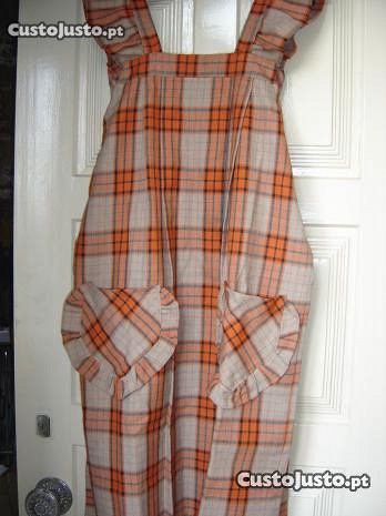 Duas algibeiras à frente, duas fitas atrás para apertar até ao ponto necessário, de acordo com o tamanho da barriga.
