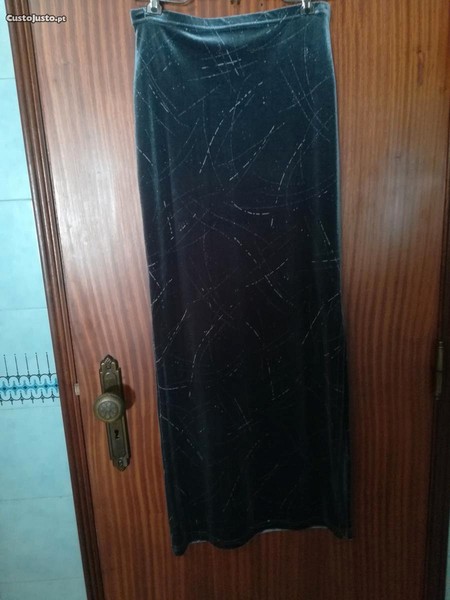 Preço: 5 €Saia travada Veludo Cinza Escuro com efeitos prata