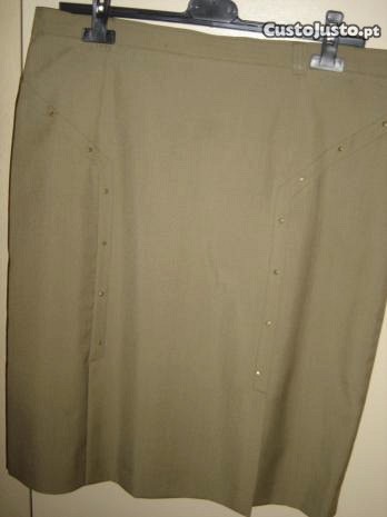 Preço: 15 €Saia verde tropa com duas rachas à frente - Tam.44