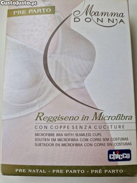 Suporte pré-parto em microfibra macia da Chicco, branco, novo com etiquetas, dotado de copas pré-formadas e sem costuras. Confortável e seguro para a fase pré-parto. Tamanho 34 e 42 (USA).