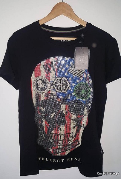 todos os tamanhos em stock camisola manga curta com caveira com brilhantes cravados