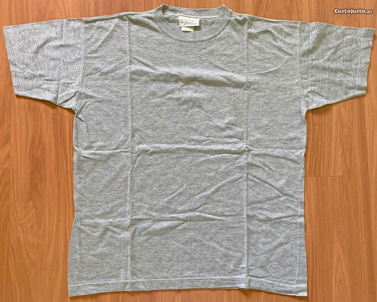 É de boa qualidade, em tecido muito leve. De cor completamente cinza claro mesclado, não possui qualquer estampado. É de manga curta, corte recto e decote redondo. É muito prática, moderna e confortável. Adequa-se a diferentes tipo de situações ou ocasiões, sejam elas mais casuais, descontraídas ou desportivas, dependendo das peças com que combina.
