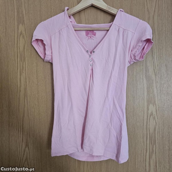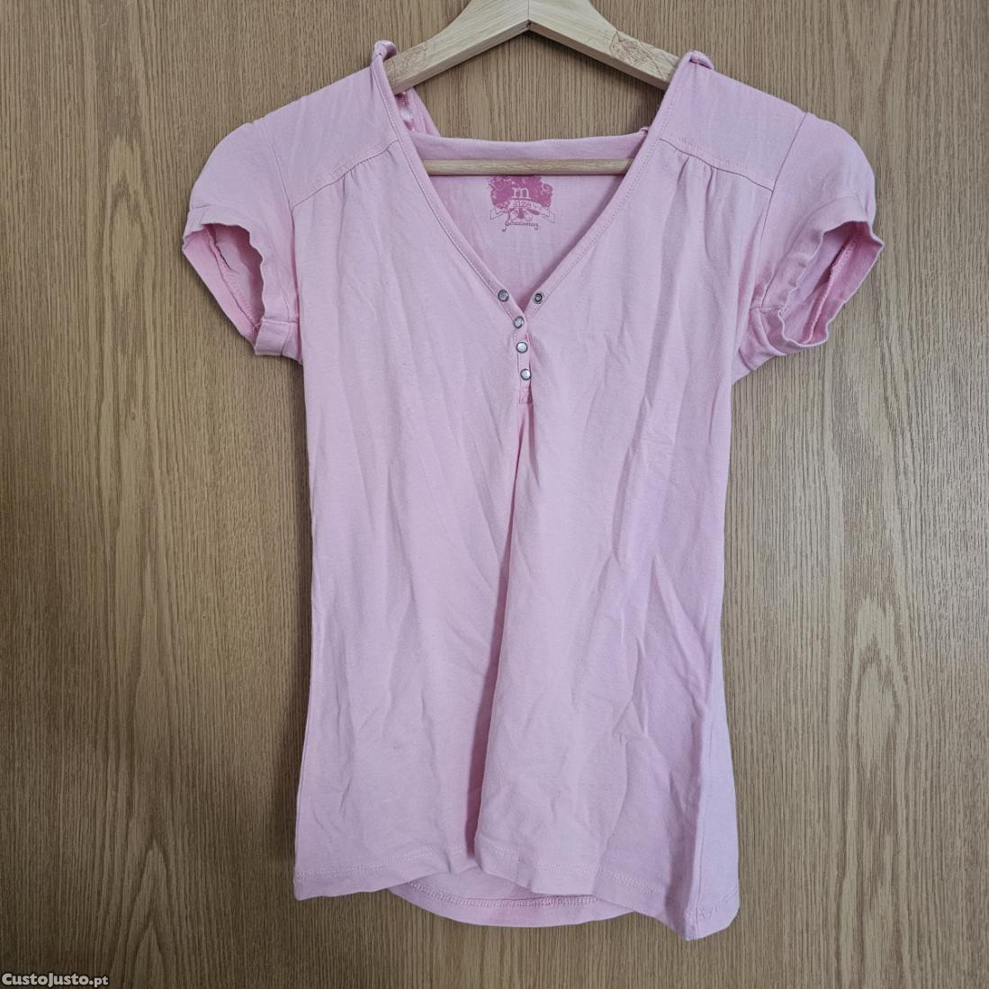 T-shirt de manga curta de cor rosa da marca Stradivarius. Muito bom estado. Tamanho M.