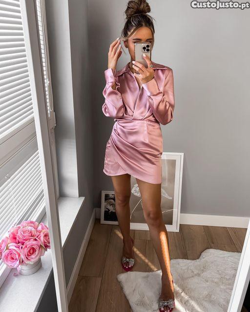 Preço: 20 €Vestido acetinado rosa da Zara novo