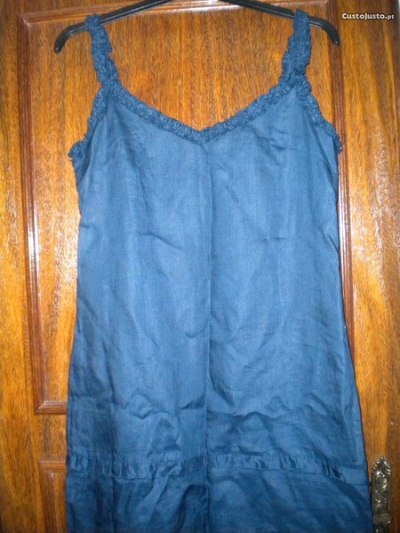 Vestido tem o feitio daqueles que é mais curto a frente e mais comprido atrás