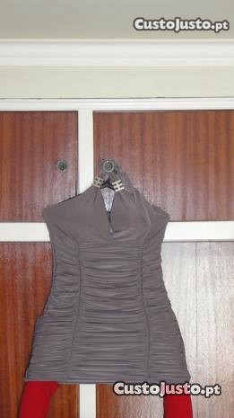 Vestido de senhora cor cinza/castanho com elastano aderente ao corpo, tamanho único.