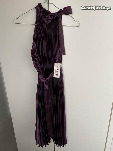 Vestido acetinado plissado com muita elasticidade. Tem 55 cm esticado de cava a cava. Nunca usado. Veste de tamanho S a L. Altura 89cm. Pode usar com ou sem cinto. Entrego em mão em Lisboa ou envio por ctt.