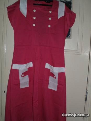 Preço: 12 €Vestido Rosa forte e Branco tamanho Médio -Anos 70