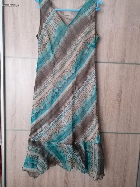 Preço: 40 €Vestido sedoso com vários tons de azul e bege