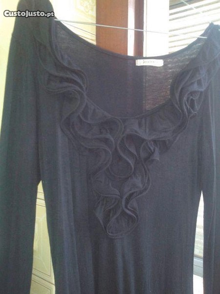 Vestido / Túnica, marca Stradivarius, com folhos no decote e mangas. Cor preto e tamanho M. Pouco uso. Entrega pessoalmente em Sacavém Centro. Enquanto o anúncio estiver activo, o artigo está DISPONÍVEL.