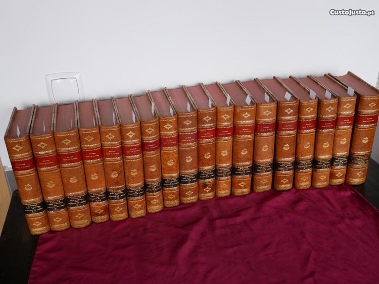 N 13148 - OLIVEIRA, Eduardo Freire de.- Elementos para a historia do municipio de Lisboa.- Lisboa: Typographia Universal, 1885-1911.- 17 vols. (+ 2 vols. em 1); 23 cm.- E. Edição da iniciativa da Câmara Municipal de Lisboa integrada nas comemorações do centenário do Marquês de Pombal, publicando documentação oficial, organizada cronologicamente, sobre temas tão variados como banquetes, limpeza pública, as exéquias do rei, etc. Conjunto completo (tudo quanto se publicou), incluindo os dois volumes de índices (encadernados em um), publicados em 1942 e 1943 por Esteves Rodrigues da Silva, sob a direcção de Jaime Lopes Dias. Exemplar limpo, apenas aparado à cabeça (corte carminado) conservando as capas de brochura em todos os volumes (algumas capas com picos de acidez). Meias-encadernações de pele.