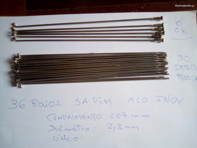 Raios SAPIM Inox 2,3 x 207 com defeito.