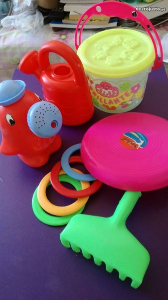 Preço: 10 €1 balde com uma tampa + 2 regadores + um disco de praia + 1 ancinho + 4 argolas+saco