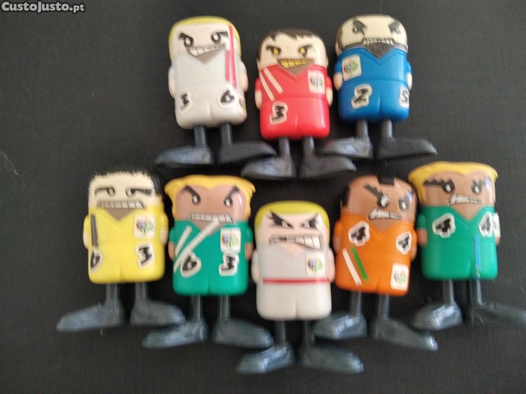 2 cinzentos, 2 verdes, 1 azul, 1 laranja, 1 verde, 1 amarelo