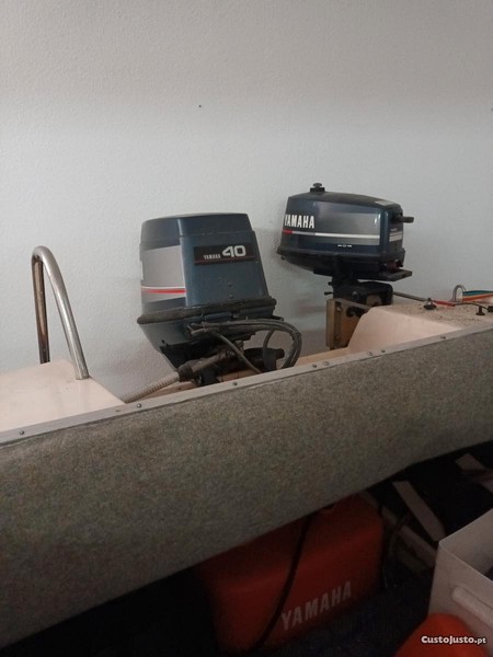 Barco Argus de 4,5 mt, com 2 motor Yamaha de 40 e outro de 4 cv a 2 tempos. , com atrelado, depósitos de gasolina, lotação de 6 pessoas, com caixa de direcção e cabos novos, revisão de motor efetuada, com caneiros em inox e escada de mergulho. Vom auto radio e bateria Muito bom estado