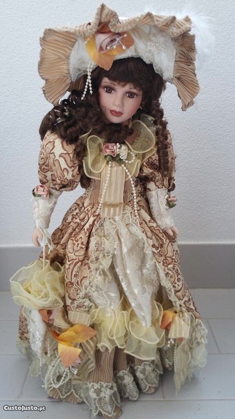 Boneca DOLL de porcelana, pintada á mão, de coleção, excelente qualidade, verdadeira, de uso não recomendado para crianças com menos de oito anos, sem uso como nova.Altura 50cm.