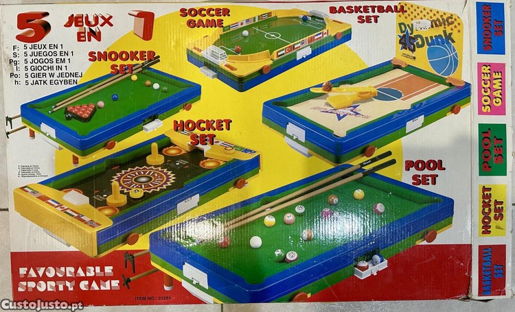 Preço: 15 €Cinco jogos em um. Snooker, Futebol, basquetebol, hóquei e pool.