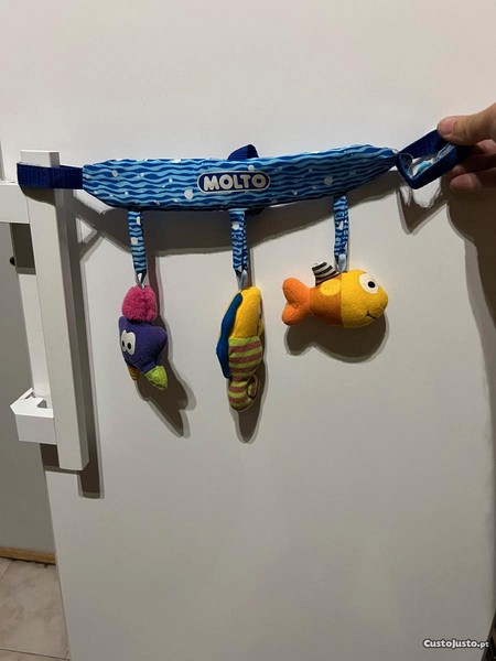 Vendo conjunto de três bonecos para fixar no berço, marca Molto, usado.