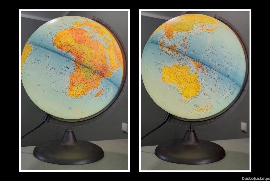 Globo Terrestre, com luz (interruptor incluído), A42 x D34cm, base com D20cm, excelente estado.
