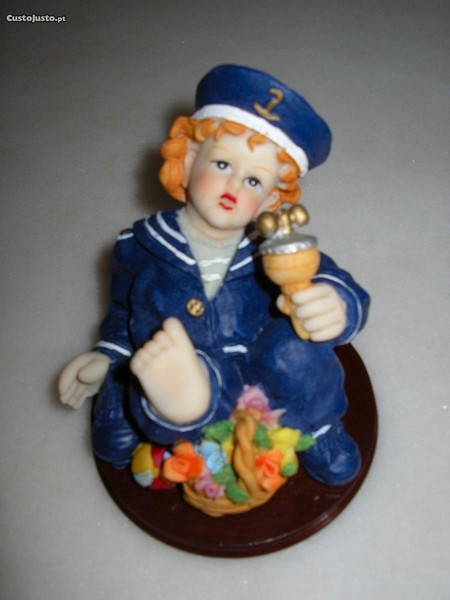 Peïa em resina e base em madeira de Menino com Fato de Marujo.