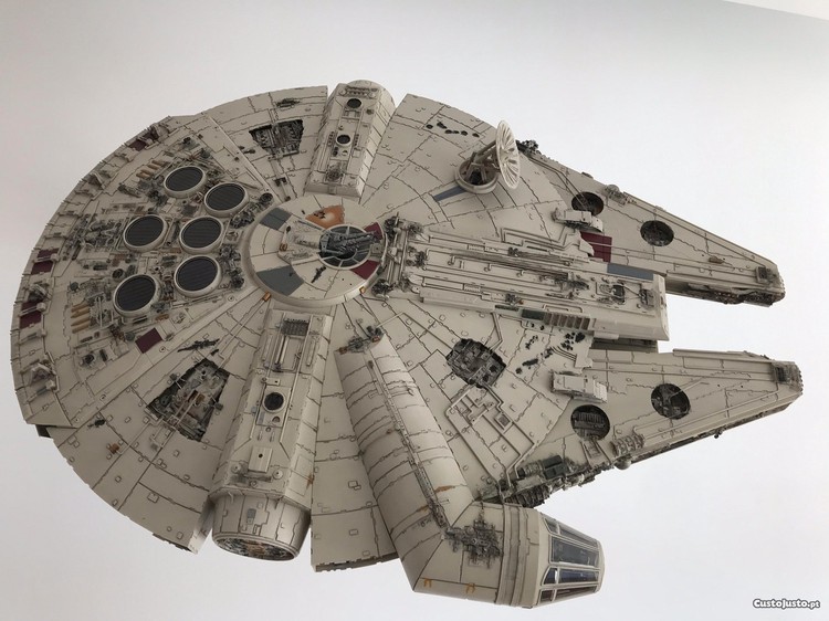 A nave mede 82x63 cm. Tem suporte para parede. Tem luzes e som. Vai com a fonte de alimentação.