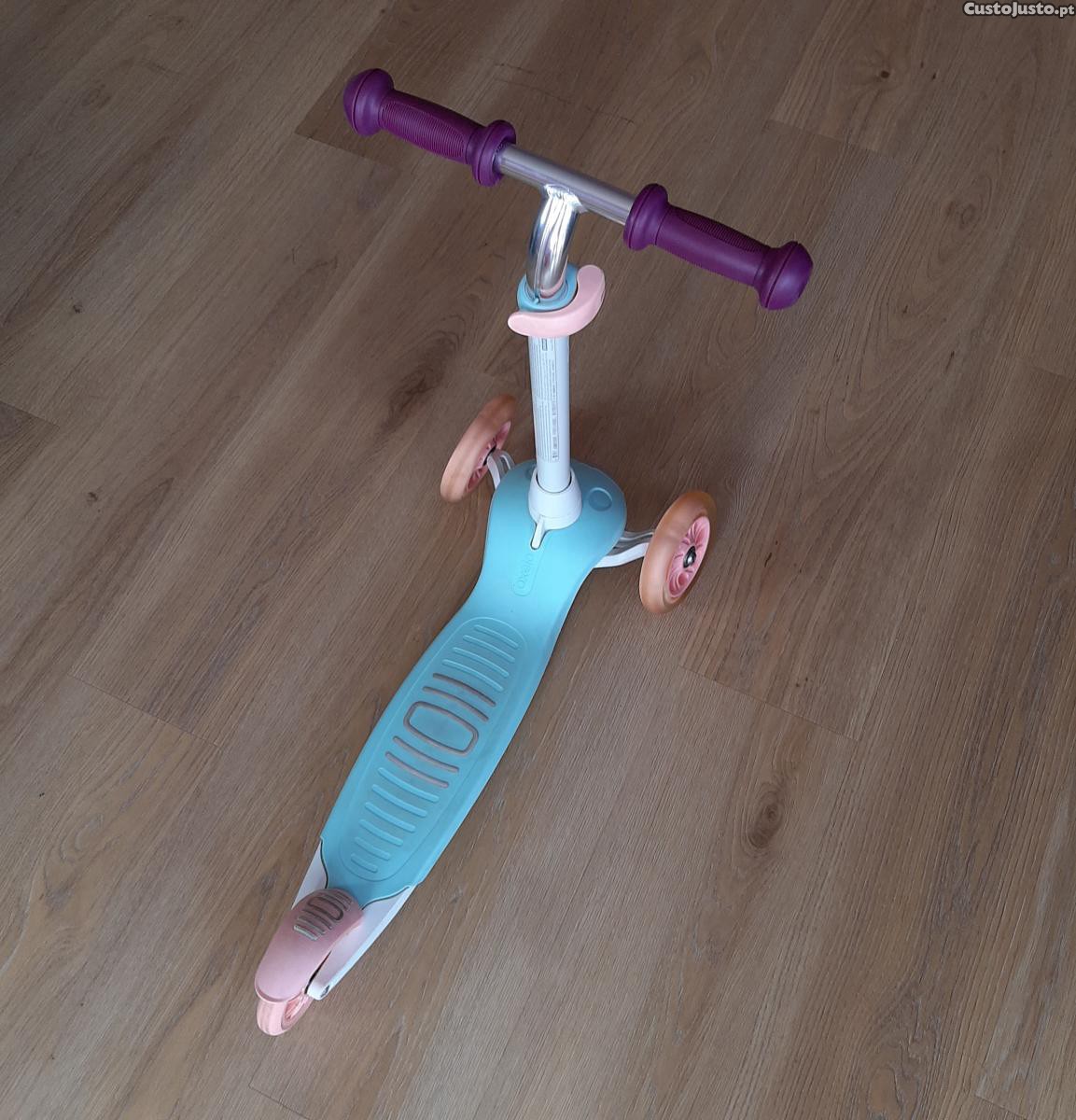 Trotinete de 3 rodas, de muito fácil aprendizagem para crianças de 80 cm a 1,20 m (2 a 5 anos) se divertirem a descobrir as primeiras sensações de deslize.