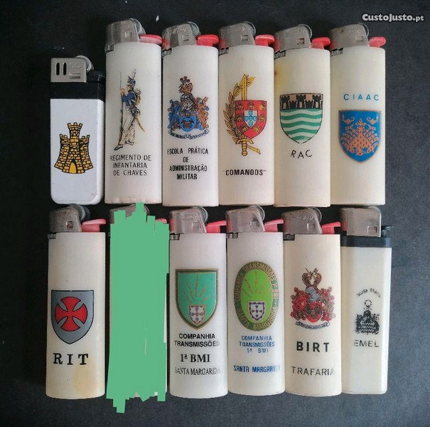 11 isqueiros gravação unidades do Exército, algumas já sido desactivadas e sendo todos antigos